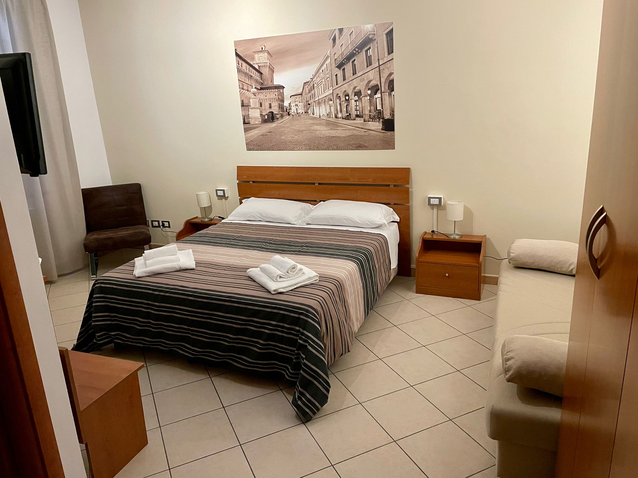 In pieno centro storico a Ferrara, in Via San Romano, a pochi passi dal Duomo e dal Castello Estense, SMART HOTEL permette di raggiungere a piedi con comodità tutti gli angoli della città …Un momento di relax nelle tue giornate di lavoro, da turista o altro!!! SMART HOTEL significa applicare il concetto LOW COST al mondo dell’ospitalità alberghiera… Da noi troverai infatti i servizi essenziali ad un prezzo vantaggioso!!! Sarai libero di dormire in pieno centro a Ferrara e muoverti a piedi o con le nostre biciclette scegliendo tu quale budget vuoi avere!!! SMART HOTEL E’ ANCHE FACILE DA RAGGIUNGERE IN AUTO…CON UN AMPIO PARCHEGGIO PUBBLICO PER AUTO A SOLI 150 METRI (COSTO €4,20 AL GIORNO!!!)